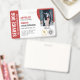 Horizontales Service Hund ID Abzeichen in Rot und Weiß mit Platz für ein Foto des Service Hund und zwei Logos. Geben Sie Namen, Titel und Registrierungsnummer ein. Fügen Sie auch den Namen des Handlers und die Kontaktinformationen hinzu.