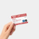 Horizontales Service Hund ID Abzeichen in Rot und Weiß mit Raum für zwei Logos. Geben Sie Namen, Titel und Registrierungsnummer ein. Fügen Sie auch den Namen des Handlers und die Kontaktinformationen hinzu.