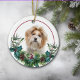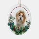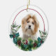 Red White Shih Tzu Dog Evergreen Wreath Keramik Ornament
