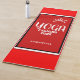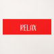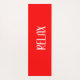 Zweifarbiger roter Hintergrund mit weißem Text. Yoga Calming Zone zitieren. Weiße doppelte Fünf-Punkte-Sterne-Pose. Personalisierter Name im mittleren geometrischen gerahmten Bereich, in schwarzem, weißem und dunkelrotem Hintergrund dargestellt. Relax ist in weißem Text diagonal gegen massiven roten Hintergrund geschrieben. Original Kunstwerk Zitat Design © 2020 TamiraZDesign.
