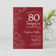 Rote weiße Flora Überraschung 80. Geburtstagsparty Einladung. Minimalistisches modernes Design mit botanischen Akzenten und Typografie-Script-Schriftart. Einfache florale Einladungskarte perfekt für eine stilvolle weibliche Überraschung am Tag. Kann für jedes Alter angepasst werden. Gedruckte Zazzle Einladungen oder Sofortdownload digitalen druckbaren Vorlage.