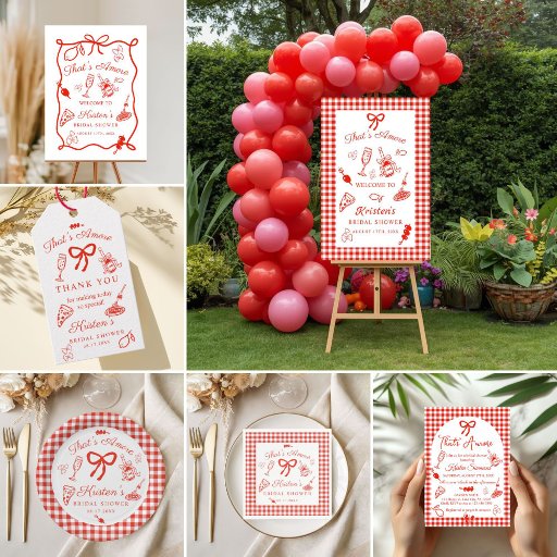 Celebrate love the Italian way with our Red & White That’s Amore Bridal Shower Invitation. Featuring a charming red gingham background and playful Italian food illustrations, this invitation sets the perfect tone for a joyful, amore-filled celebration inspired by la dolce vita.