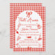 Designed for an Italian-themed bridal shower, this whimsical invitation is ideal for pizza parties, pasta nights, or Tuscan-inspired gatherings. The classic red and white color palette pairs beautifully with Italian décor, checkered tablecloths, and food-themed party details, creating a cohesive and festive look.