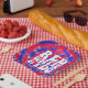 Haben Sie einen Amerikanische Unabhängigkeitstag Thema Junggeselinnen-Abschied? Feiern Sie stilvoll mit unserem Retro "Red White & I Do" Amerikanische Unabhängigkeitstag inspiriert Papier Teller! Mit einem kühnen Retro-Typografie-Design auf einem roten, weißen und blauen Krawatte-Farbhintergrund. Machen Sie es besonders, indem Sie es mit dem Namen und den Party der Braut anpassen, indem Sie "diese Vorlage personalisieren" auswählen. Wenn Sie Fragen oder Wünsche bezüglich des Designs haben, kontaktieren Sie uns bitte über den Chat; wir helfen Ihnen gerne weiter!