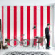 Muster für Muster der Muster für das Hintergrundbild des Musters für das Muster der Hintergrund-Oberfläche für rote und weiße große vertikale Streifen