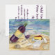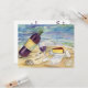 Eine Flasche Rotwein neigt sich gegen ein halbes Glas Wein am Strand. Eine Käseplatte steht zum Schneiden bereit, und ein zweiter Wein ist fertig zum gefüllt. Muscheln vermischen sich am Sandstrand. Weiche pastellfarbene Ozeanwellen strahlen im Hintergrund aus. Das Weinetikett kann für Ihre eigene Flaschenpost personalisiert sein! Malerei in Aquarellfarbe. Fügen Sie Ihren eigenen Text auf der Rückseite der Rotwein Strand-Party Einladungen. Machen Sie mit Ihren eigenen Texten und Bildern für Ihr Party individuelle Einladungen!