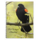 Roter geflügter schwarzer Vogel auf einem Zweig personalisieren dieses Notebook mit Ihrem Namen oder Betreff Text.