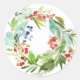 Red Winterberry und Juniper Wreath Weihnachten Runder Aufkleber