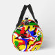 Colorful duffle bag featuring Red, Yellow, Blue and Green Swirls. Matching accessories also available.