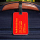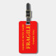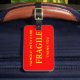 Gepäckanhänger mit Fragile, Handle mit Vorsicht, Danke. Gelber Text auf einem roten Hintergrund. Personalisierbar. Personalisieren Sie mit Ihrem Namen und Ihren Informationen mithilfe der einfachen Vorlagen. Schriftart, Schriftart und Schriftart sind individuell einstellbar.