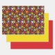 Red Yellow Star Flat Sheet Set of 3 Geschenkpapier Set