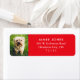 Make your mail sending easier with this personalized red return address label featuring custom address text and a photo of your lovable pet. The classic white text can be modified to any color or font combination using the design edit function.