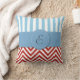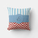 Red Zigzag, Zickzack, Blue Stripes, Monogramm Kissen