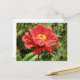 Diese hübsche Postkarte zeigt ein detailliertes Foto einer atemberaubenden roten Zinnia-Blume mit einem hübschen gelben Zentrum. Das Foto wurde mit Makrofotografie für ein exquisit detailliertes Ergebnis aufgenommen.