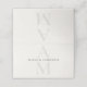 Elegante editorische Tischkarte für die Hochzeit mit einem weichen, übergroßen Anfangsmonogramm und moderner Typografie.
