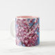 Ein niedlicher, rosa, blumenrosa Redbud Baum mit einer Biene Zwei-Tone-Tasse.