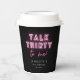 Talk DRITTEN zu mir 30. Geburtstag Party Neon Pink Party Drinks Papier Cups bietet einen modernen rosa Neontext "Sprich mit mir!" in modernen Kalligraphie-Skript auf einem schwarzen Hintergrund. Von Evco Studio entworfen www.zazzle.com/store/evcostudio