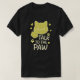 Ein niedliches und spielerisches T - Shirt-Design mit einer lächelnden Cartoon-Katze, deren Pfote aufgezogen wurde, begleitet von der lustigen Phrase "Sprich mit der Pfote". Diese hübsche Abbildung ist perfekt für Katzenliebhaber und alle, die einen leichten Spaß haben, und verleiht jedem lässigen Outfit eine persönliche Note.