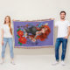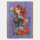 Eine rot haarige Frau mit einem grauen Panzeroberteil und denim blauen Jeans. Sie hat zwei volle Armmübel mit Tattoos. Alle gezeichnet in einem Comic Buch neue Schulart.
