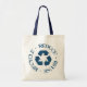 Reduce - Reuse - Recycling - canvas tote Bag with distressed blue lettering and recycling symbol.