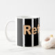 Referent-Tasse ist mit mutigen schwarzen Streifen und dem Wort Referenten weiß. Vervollkommnen Sie für jeden möglichen Referenten.
