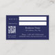 Navy blauer Hintergrund, weißer Text. Auf der Vorderseite: Fügen Sie Ihr Firmenlogo hinzu, Rabatt. Gültiges Datum. Zurück: Personalisieren Sie Ihren Firmennamen, Ihre Telefonnummer, Ihre E-Mail, Ihre Website-Adresse, Ihren qr-Code auf Ihrer Website oder Ihrem Social-Media-Konto.