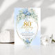 Refined Blue Floral Gold 80th Birthday Invitation Einladung