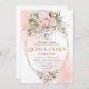 Refined Boho Blush Roses Greenery Gold Quinceañera Einladung