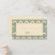 This elegant wedding place card features a delicate floral pattern with soft pastel hues, creating an enchanting and romantic atmosphere. The primary motifs are large white flowers set against a soothing teal background, complemented by subtle gold accents that add a touch of sophistication. The typography is refined and cursive, enhancing the overall charm and grace of the design. Perfect for a classic or vintage-inspired wedding, this place card exudes timeless beauty and will beautifully adorn your reception tables, inviting guests to partake in a memorable celebration.