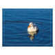 Eine niedliche, kleine weiße Ente schwimmt und reflektiert sich in hellblauem Wasser.