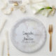 Machen Sie Ihren Empfang umso schöner mit diesen maßgeschneiderten Hochzeitspapier-Tellern. Die Namen des Ehepaares werden in modernen Schriftzeichen auf einem Hintergrund dargestellt, der die Blume der weißen Pony reflektiert und die Herzen prägt.
