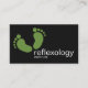 Themenorientierte Visitenkarte mit Grafik von zwei Fuß. Front des Kartenraumes für Handelsnamen und tagline. Zurück vom Kartenraum für Namen, Stellenbezeichnung und Kontaktinformationen. Für podology Reflexzonenmassage- und Pedicurepraktiker. © DragonArtz Entwürfe