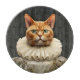 Die lustige Ingwer-Katze ist in Vintagen Kleidern und in einem Halsband gekleidet.