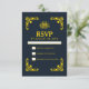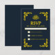 Regal Contrast Midnight Blue & Gold Wedding RSVP Karte