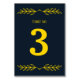Regal Contrast Mitternachtsblau und Gold Blüten Tischnummer