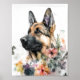 Regal German Shepard: Eine Fusion des Powers ist ein einzigartiges und wunderschönes Kunstwerk, das die Gnade und den Power der geliebten Hunderasse zeigt. Dieses atemberaubende Gemälde zeigt eine deutsche Fahne in Bewegung, umgeben von fein vermischten Aquarellblumen. Die kühnen und kontrastreichen Farben des Gemäldes schaffen eine auffallende Komposition, die die Kreativität und das Können des Künstlers zeigt. Die zarten Blütenblätter der Blume harmonieren nahtlos mit den Aquarellspülen und verleihen dem Stück eine weiche und feminine Qualität.