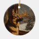 Keramik-Ornament mit einem königlichen deutschen Schäferhund, neben einem Weihnachtsbaum in einem klassischen Ölgemälde, die Eleganz und Urlaubskomfort in Ihre Einrichtung bringen.