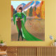 Originelle Kunst einer schwarzen Frau in einem modischen grünen Kleid, Lederhose und Stiefel steht auf einem Schlossbalkon, der die Herbstluft einnimmt und die schönen Blätter genießt. Ideal für Herbst und Erntedank. Ideal für einen Fashion-Liebhaber.