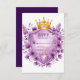 Diese exquisite Hochzeitsvorlage beinhaltet eine königlich goldene Krone, die mit Amethystischen Juwelen geschmückt ist und über einem in Gold gerahmten heraldischen Schild versteckt ist. Umgeben von einem üppigen Lavendel- und violettem Teppichboden entsteht ein luxuriöses, Vintages Blumenmotiv. Ideal für romantische Hochzeiten mit königlichen Themen oder für elegante Feiern mit einer Touch von Adel und Blumencharme. Der leere Schild bietet Platz für individuelle Namen, Daten oder Nachrichten.