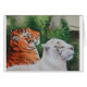 Mixed mediale Malerei eines orangen und seltenen weißen Tigers, der sich in der Sonne entspannt. Aquarell und Acryl, ursprünglich auf Aquarellpapier getreu reproduziert hier, um jedem Tierfreund zu entsprechen, besonders den großen Katzen!