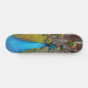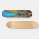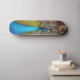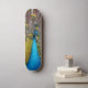 Skateboard mit Original-Kunstwerk eines Pfaues mit seinem Absturz. Die strahlenden Schwänze glühen in Blautönen, aquamarin, grün und lila und geben diesem stolzen Vogel den Anschein von Königtum. Die lebendigen Farben dieses majestätischen Erbsenhühners strahlen in dieser lebendigen Kunst, die den gesamten Designbereich ausfüllt.