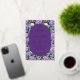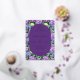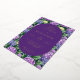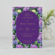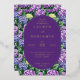 This elegant wedding invitation features a lush floral border of hydrangea flowers in shades of purple and green, creating a vibrant frame around the central text. The deep purple oval background contrasts beautifully with the lighter floral pattern, while gold accents add a touch of sophistication. The design combines traditional aesthetics with modern typography, using serif fonts to convey formality and clarity. Perfect for couples seeking a regal yet natural look, this invitation sets the tone for a celebration filled with beauty and grace.