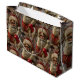 Der Weihnachtsmann taucht in einem majestätischen, reich verzierten roten Mantel auf, der bereit ist, seine Geschenkreise zu beginnen. Das Bild ist Set in einer schneebedeckten Nachtszene mit einem Rentier, das den Zauber und das Geheimnis der Weihnachtsfeier hervorruft.