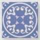 Regal Wappen ist ein raffiniertes, kreisförmiges Fliesendesign mit symmetrischen Blattrollen, die um einen zentralen Haufen sternartiger Formen kreisen. Gerahmt von einer starken Grenze, erinnert die Komposition an heraldische Embleme oder edle Siegel. Die weißen filigranen Muster kontrastieren mutig mit dem blauen Hintergrund, wodurch die Kachel eine zeitlose und würdevolle Präsenz bietet, die sich perfekt für klassische oder mediterran inspirierte Umgebungen eignet
