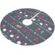 Divertido diseño lineal con regalos, calcetines de navidad, hojas de acebo, y figuras de Santa Claus o Papa Noel, entre líneas de copos de nieve en fondo gris. Cubre la base de tu árbol de navidad y deja que este acoja con cariño todos los regalos que vendrán la noche más mágica del año.