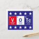 Inspirier anderen, mit dieser coolen wissenschaftlichen Postkarte abzustimmen, die Elemente aus der Periodenabfolge enthält, die das Wort "Abstimmung" in den roten, weißen und blauen Farben der Flagge der Vereinigten Staaten, die von einer Reihe von weißen Sternen begrenzt wird, ausdrückt. Elemente beinhalten Elementname, Gewicht und Atomnummer