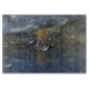 Ein kurz fokussierter Rendering eines dunklen, regnerischen Tages auf einer nördlichen Bergkuppe. Im Hintergrund sind graubraune Hügel und ein Weidenbaum mit seinen gelben Herbstlauben auf einer Insel in einem silbernen See. Im Vordergrund sind Regentropfen eingefroren in der Luft, wobei einer in der Mitte die goldene Weide und ihre Reflexion in schärferen Fokus bringt.