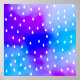 Ein schönes Design von weißem Regen fällt in einen farbenfrohen, bewölkten Himmel von blau und lila. Ein lustiges Musterdesign.