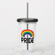 Dieses Design zeichnet das Wort Stolz unter einem bunten Regenbogen aus.
