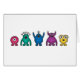 eine Familie von niedlichem/kawaii alienmonster-Cartoon/-illustrationen in den Regenbogenfarben (Rosa, Grün, Blau, Lila und Gelbe)
